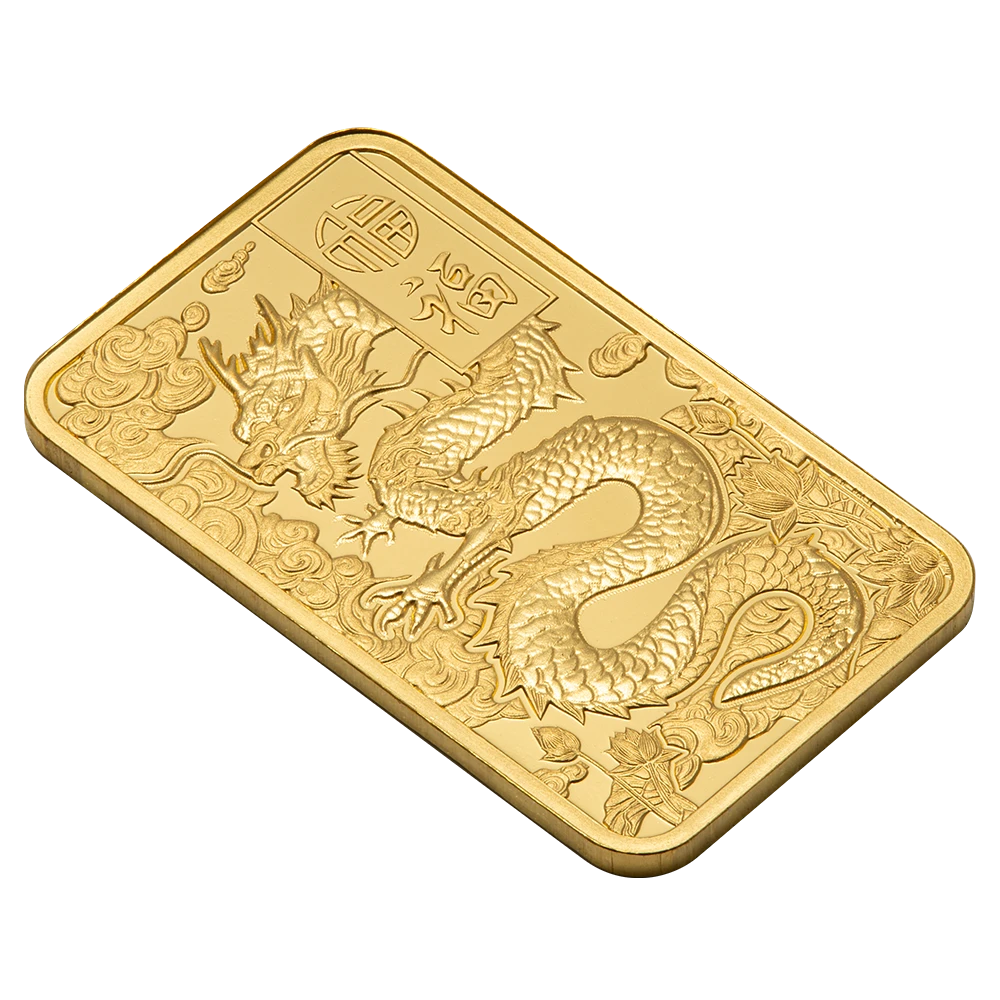 這款 5 克 999.9 純金條,封裝於色彩鮮明的 CertiPAMP 認證卡 內,並附有精美禮盒套。